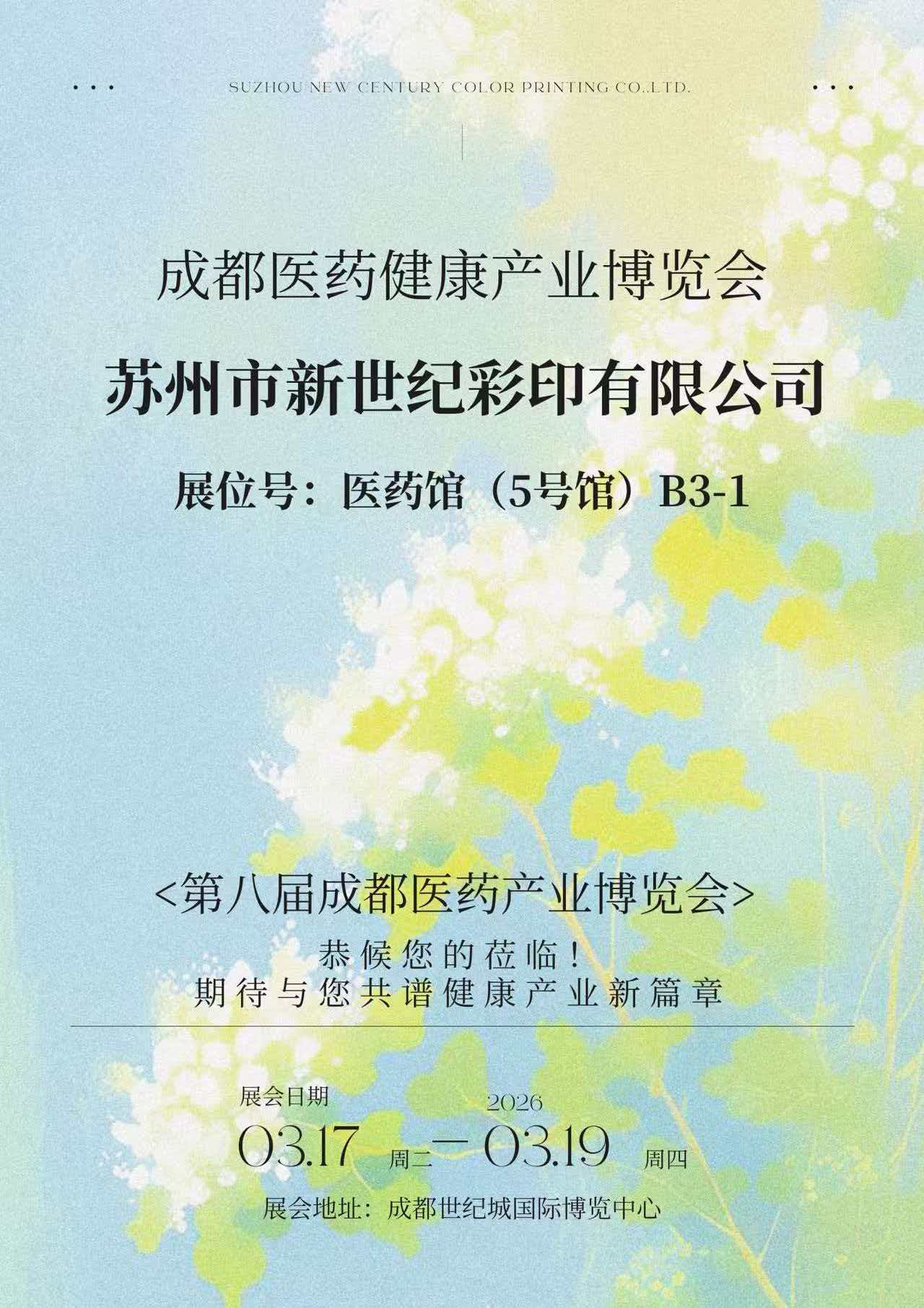 17 থেকে 19 মার্চ, 2026 পর্যন্ত, চেংদু সেঞ্চুরি সিটি ইন্টারন্যাশনাল কনভেনশন অ্যান্ড এক্সিবিশন সেন্টারে 8ম চেংডু মেডিকেল অ্যান্ড হেলথ ইন্ডাস্ট্রি এক্সপো জমকালোভাবে অনুষ্ঠিত হয়েছিল। Suzhou New Century Color Printing Co., Ltd. (এখন থেকে "New Century Printing" হিসেবে উল্লেখ করা হয়েছে) ফার্মাসিউটিক্যাল প্যাকেজিং ক্ষেত্রের সর্বশেষ কৃতিত্বগুলি উন্মোচন করেছে বুথ B3-1 ফার্মাসিউটিক্যাল হলে (হল 5), ব্যাপকভাবে ফার্মাসিউটিক্যাল প্যাকেজিং প্রিন্টিং, স্ট্রাকচারাল ডিজাইন এবং কমপ্লায়েন্স সার্ভিসে এর ব্যাপক শক্তি প্রদর্শন করে। এটি অনেক ফার্মাসিউটিক্যাল কোম্পানী এবং শিল্প বিশেষজ্ঞদের আকৃষ্ট করেছে থামাতে এবং ধারনা বিনিময় করতে।